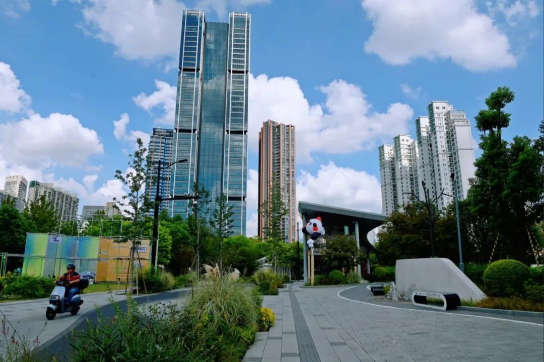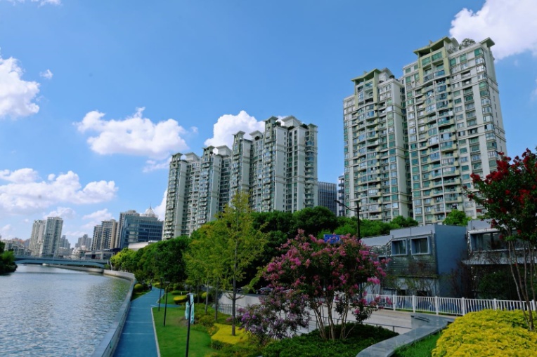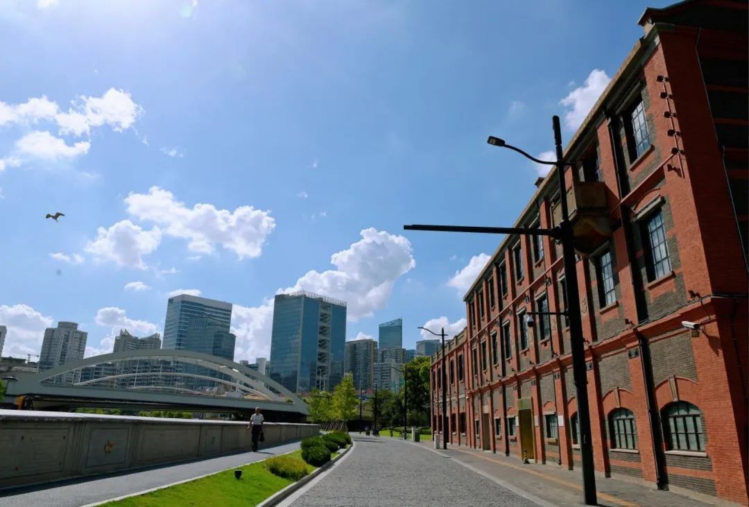 蓝天如洗,与苏河湾的悠悠河水相映成趣,河水波光粼粼,仿佛也染上了天空的蓝。