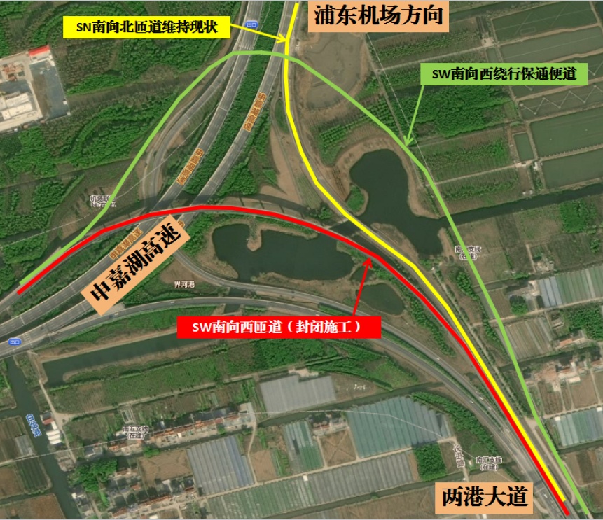 市公安局交警总队介绍,为配合浦东国际机场T3航站楼S32立交改造工程施工,8月30日夜间22时起,S32申嘉湖高速两港大道立交SW(南向西)匝道封闭施工,车辆改走东侧新建保通便道通行。施工期间交通组织调整详见↓