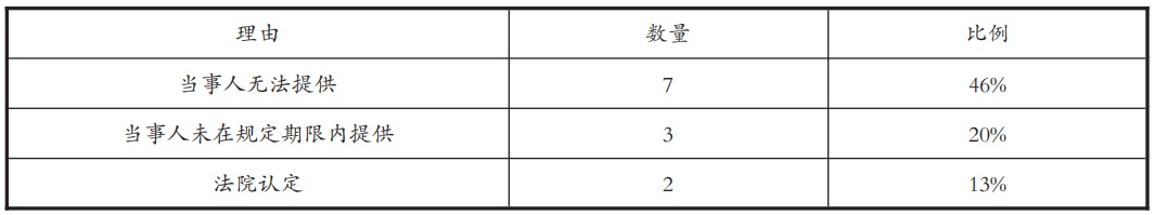 当事人事先约定了适用外国法,但在庭审过程中当事人双方均无法查明外国法或当事人双方在诉讼过程中一致同意适用中国法律,而最终适用中国法律的,共计19件。其中,法院主要以当事人未在指定期限内提供或庭审终结前未提供外国法查明结果为由,转而适用中国法律。此外,也存在法院对当事人释明后,当事人明确表示没有能力提供外国法查明结果且拒绝委托专业机构查明而最终适用中国法律的情形。