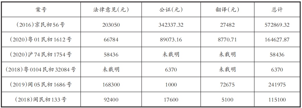 首先,查明外国法花费昂贵。例如,在已查明的案件中,委托律师出具法律意见书的价格区间为人民币58436元至203050元(详见表3),由此使得自然人间诉讼案件中,当事人无力承担外国法查明的高昂费用。也因此,已查明案件的当事人均为公司。在委托专业外国法查明机构的情形下,仅(2019)粤05民终1129号民事判决书载明了查明费用为人民币40000元,该笔费用由当事人自行支付,在胜诉后由败诉方承担。