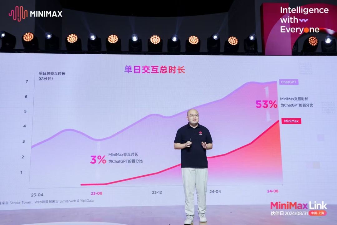 据统计,MiniMax每日与全球用户进行超30亿次交互,处理超3万亿文本token、2000万张图片和7万小时语音,大模型日处理交互量排名国内AI公司首位。