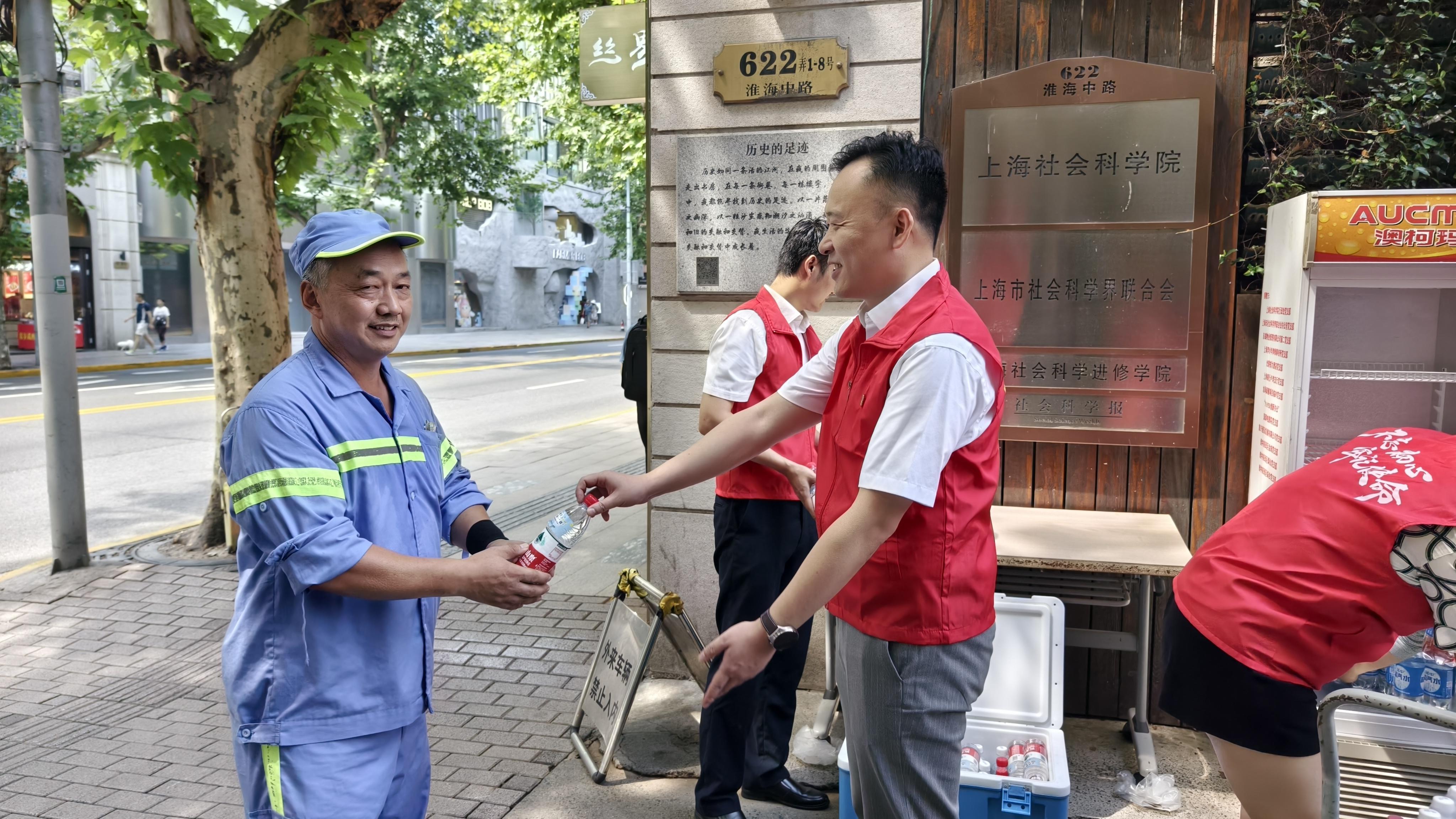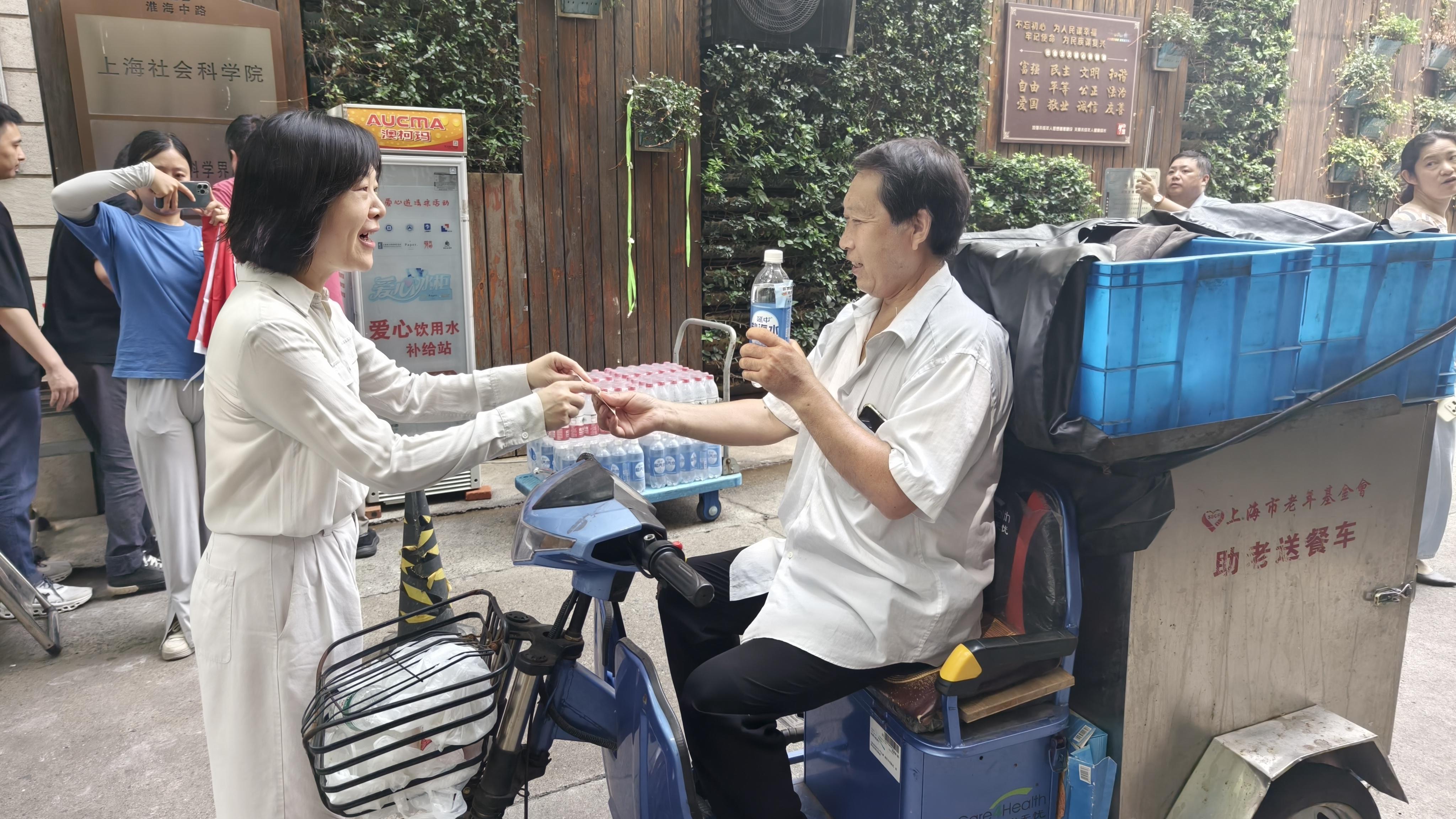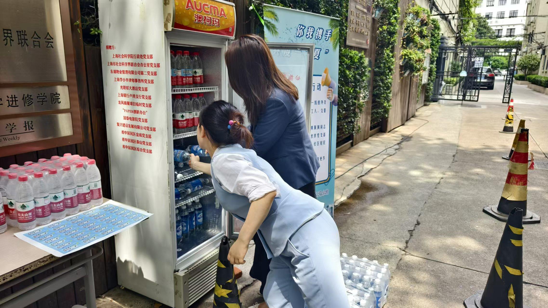 “师傅,天气这么热,您辛苦了!来,喝瓶水解解暑吧,我们这儿有冰镇的,也有常温的,看您喜欢哪种?”今年夏天,上海连日高温,骄阳似火。但瑞金二路街道泰山公寓门前却涌动着一股温馨的凉意。这里,由淮中居民区党总支精心策划的“夏日清凉补给站”成为了户外工作者们心中的一片绿洲。
