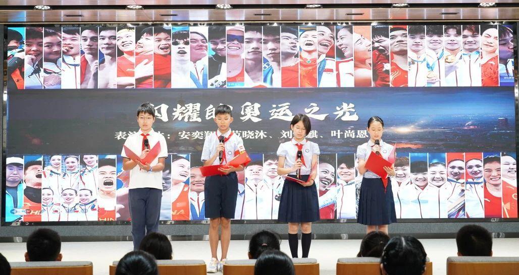 典礼上,学生们带来了诗朗诵《闪耀的奥运之光》,向在奥运会上为国争光的英雄们致敬,展现了新时代少年的风采和爱国情怀。