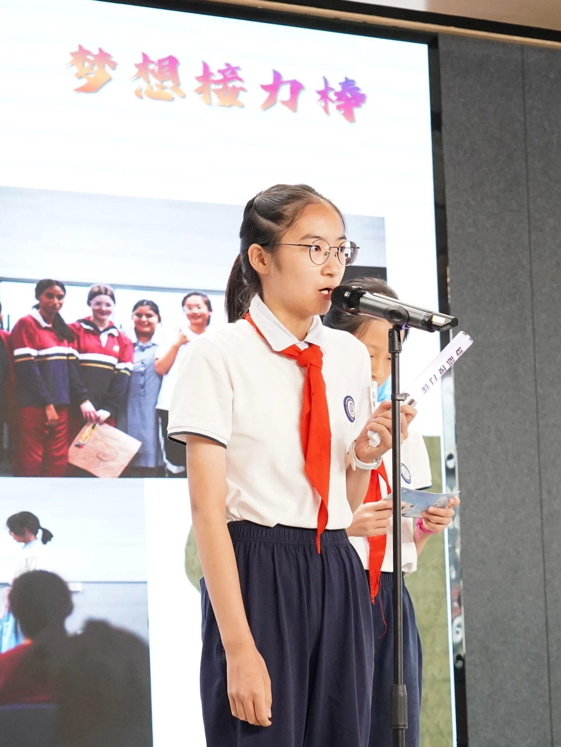 在“梦想接力棒”环节中,学生们依次传递接力棒,并分享了自己在假期中追寻梦想的实践经历,互相启发,坚定了将梦想转化为行动的信念。