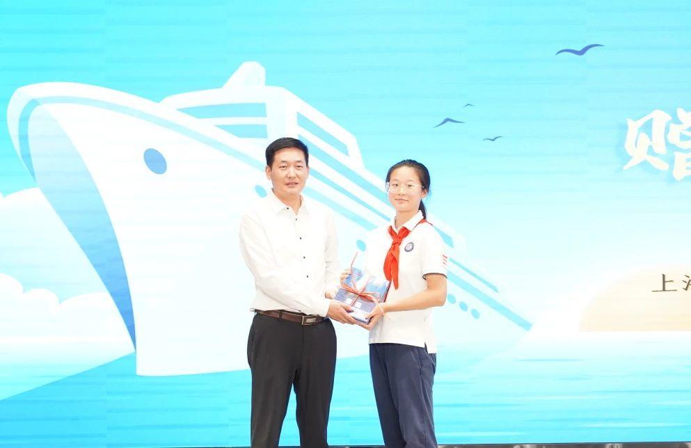 此次开学典礼还特别邀请了中国船舶集团第七〇八研究所的高级工程师、党群工作部韩龙主任作为主讲嘉宾。他以《筑梦深蓝 扬帆起航》为题,为学生们揭示了科研之路的艰辛与乐趣,并传递了“远望精神”,鼓励学生们在未来的学习生活中积极探索,敢于有梦、勇于追梦、勤于圆梦。韩主任还耐心解答了学生们的提问,并为学校赠送了一套珍贵书籍。