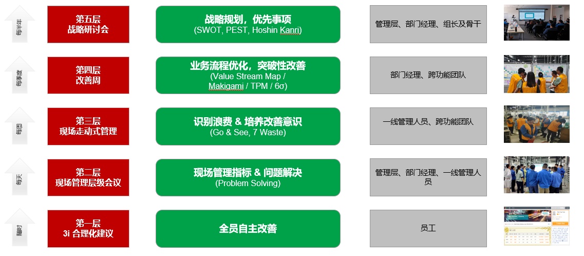 建设绩效管理体系,实施分层管理,推进改进活动。依据公司的战略目标和发展策略,制定各职能的年度指标,并按管理层次,实行管理层目标责任制、中层动态追踪目标完成情况、员工绩效面谈评价相结合的方式,实现各层次指标的评价。通过绩效测量、分析以及各种形式的例会、过程分析、管理体系内部审核、行业对标等方式方法对过程的有效性和效率进行评价,识别改进与创新机会,并按层级分层实施相应改进活动。