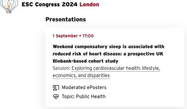 经过近14年的中位随访,补偿性睡眠最多一组的参与者患心脏病的可能性比补偿性睡眠最少一组的参与者低19%。在每日睡眠不足的亚组中,补偿性睡眠最多的参与者患心脏病的风险比补偿性睡眠最少的患者低20%。研究人员指出,“我们的研究结果表明,对于现代社会中很大一部分遭受睡眠剥夺的人群来说,在周末补觉最多的人患心脏病的几率明显低于补觉最少的人。”