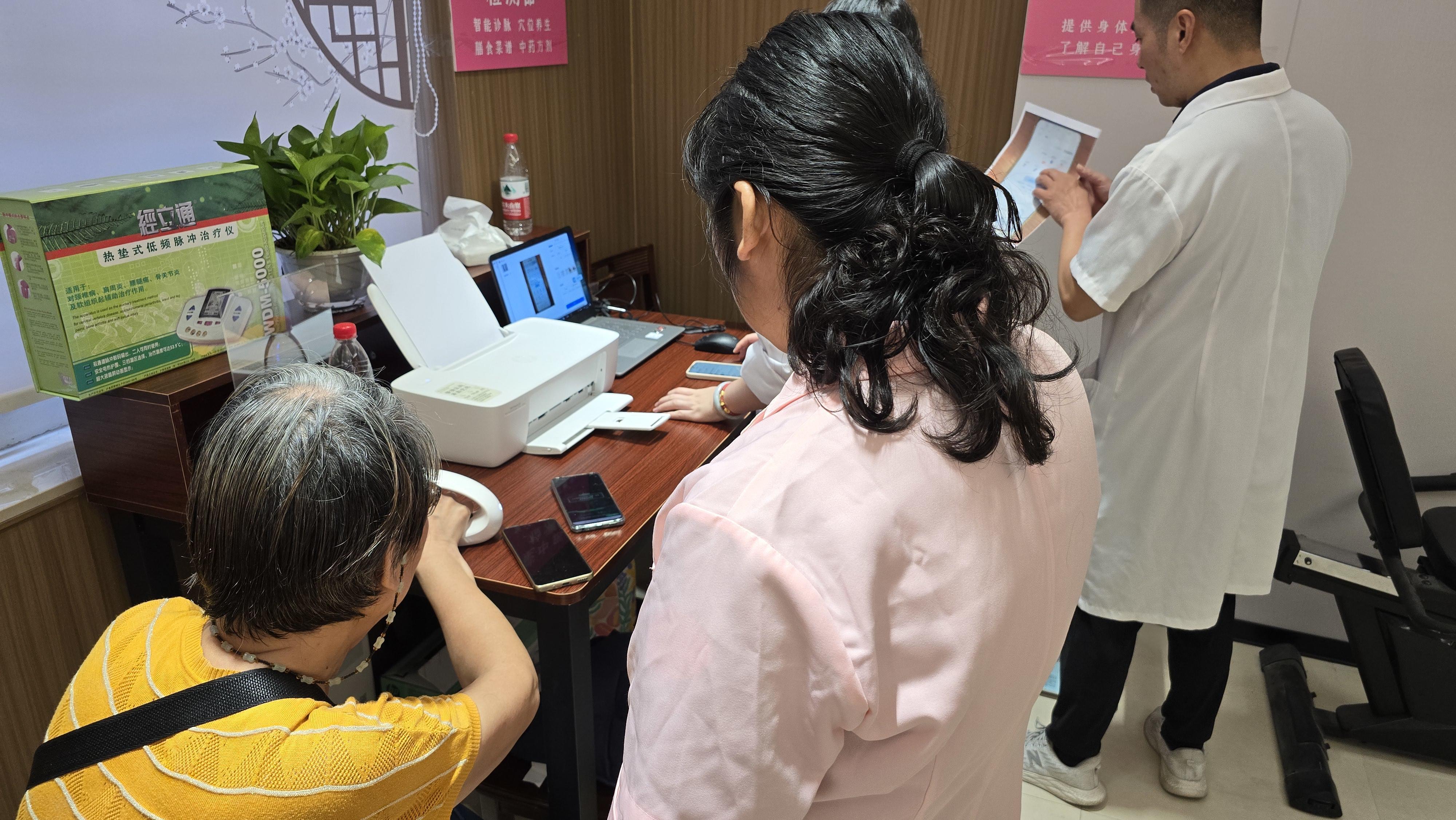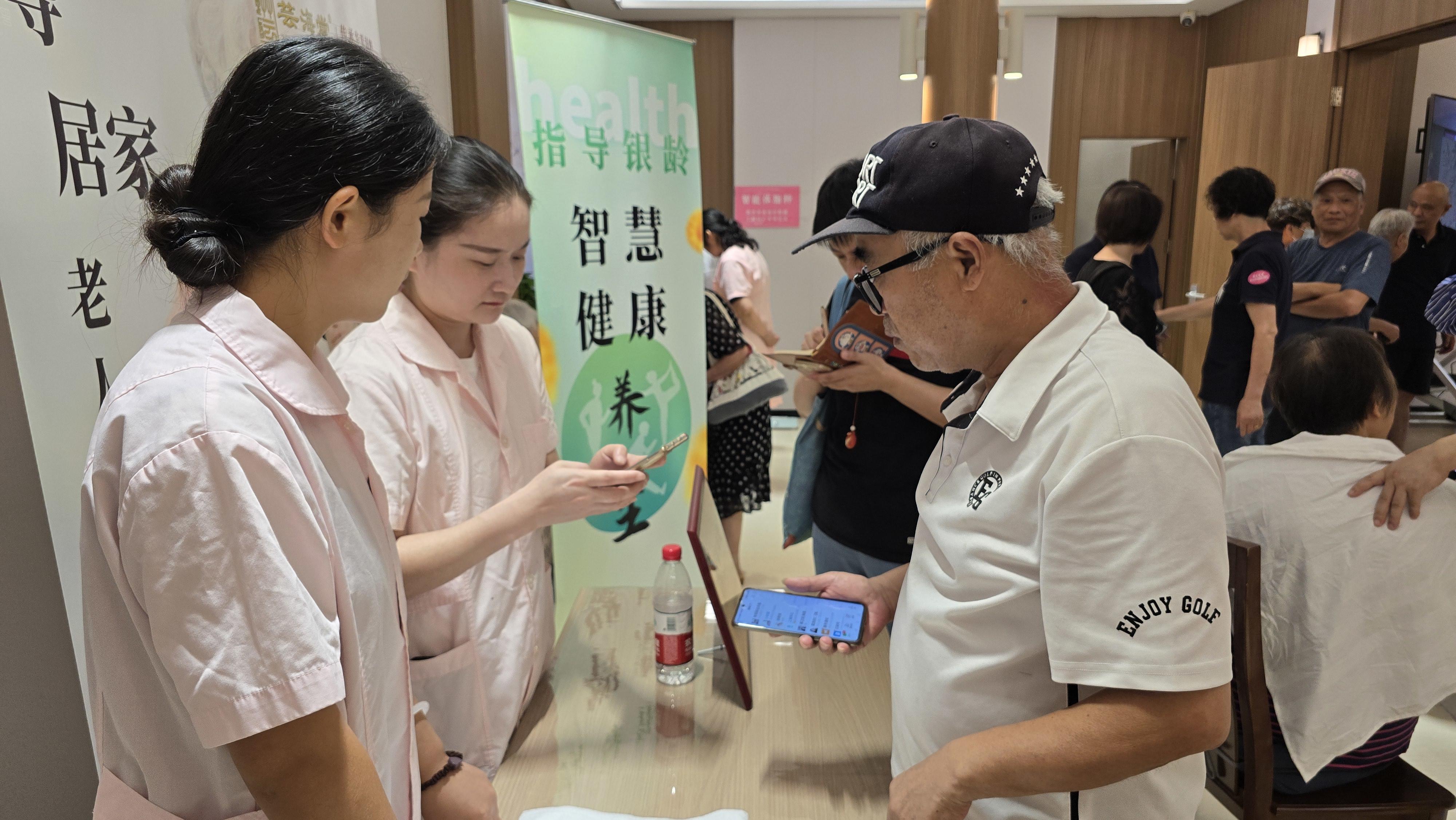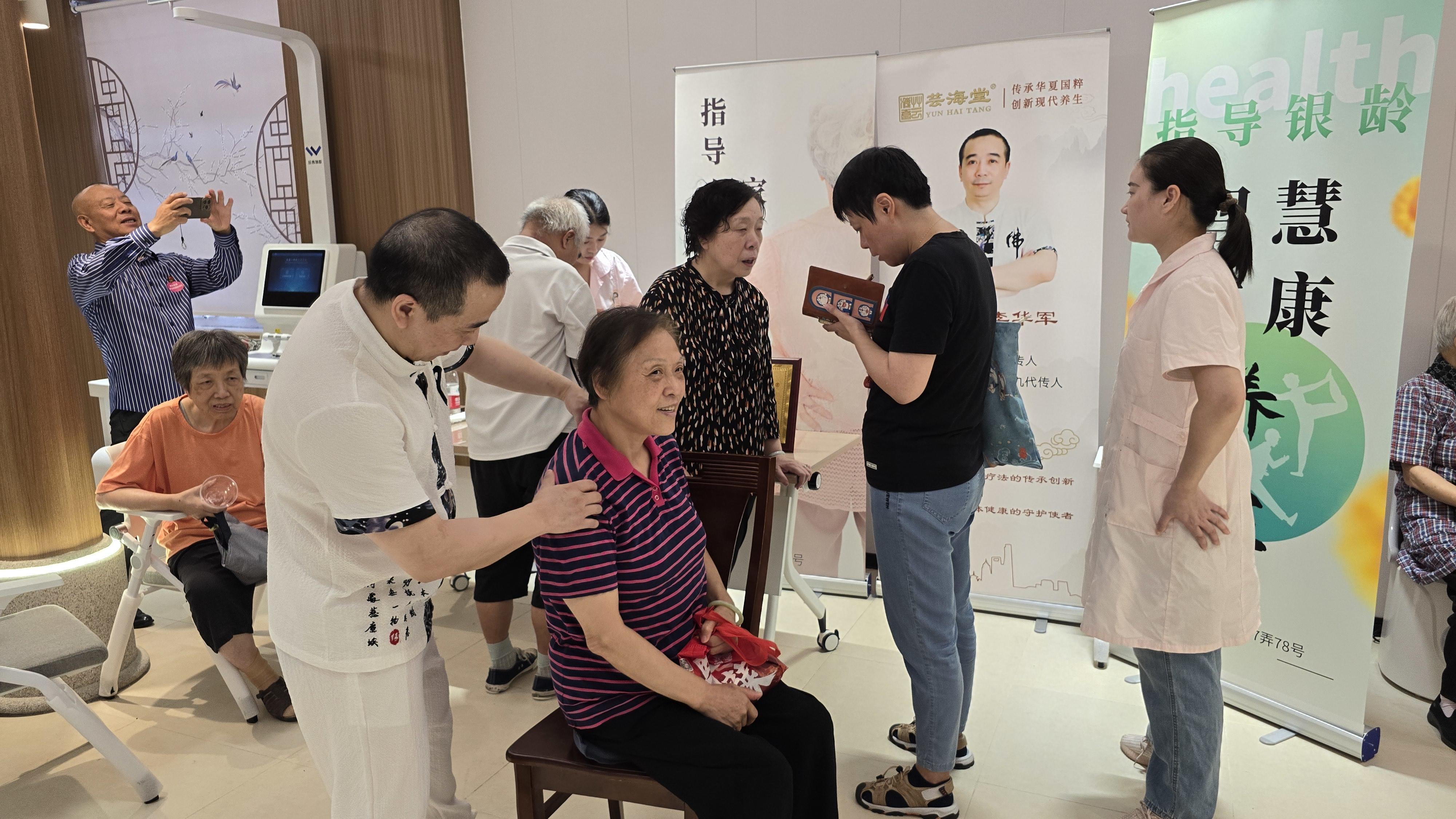 银龄智慧健康养生的区域里,工作人员指导老年人通过智能化设备,做好健康管理。例如,可以轻松改善自身体质的艾灸座椅熏蒸仪,可以帮助老人及时了解身体状况的智能中医健康检测器,可以识别脂肪、骨骼肌等指标的智能体脂秤,都让老人们大开眼界。