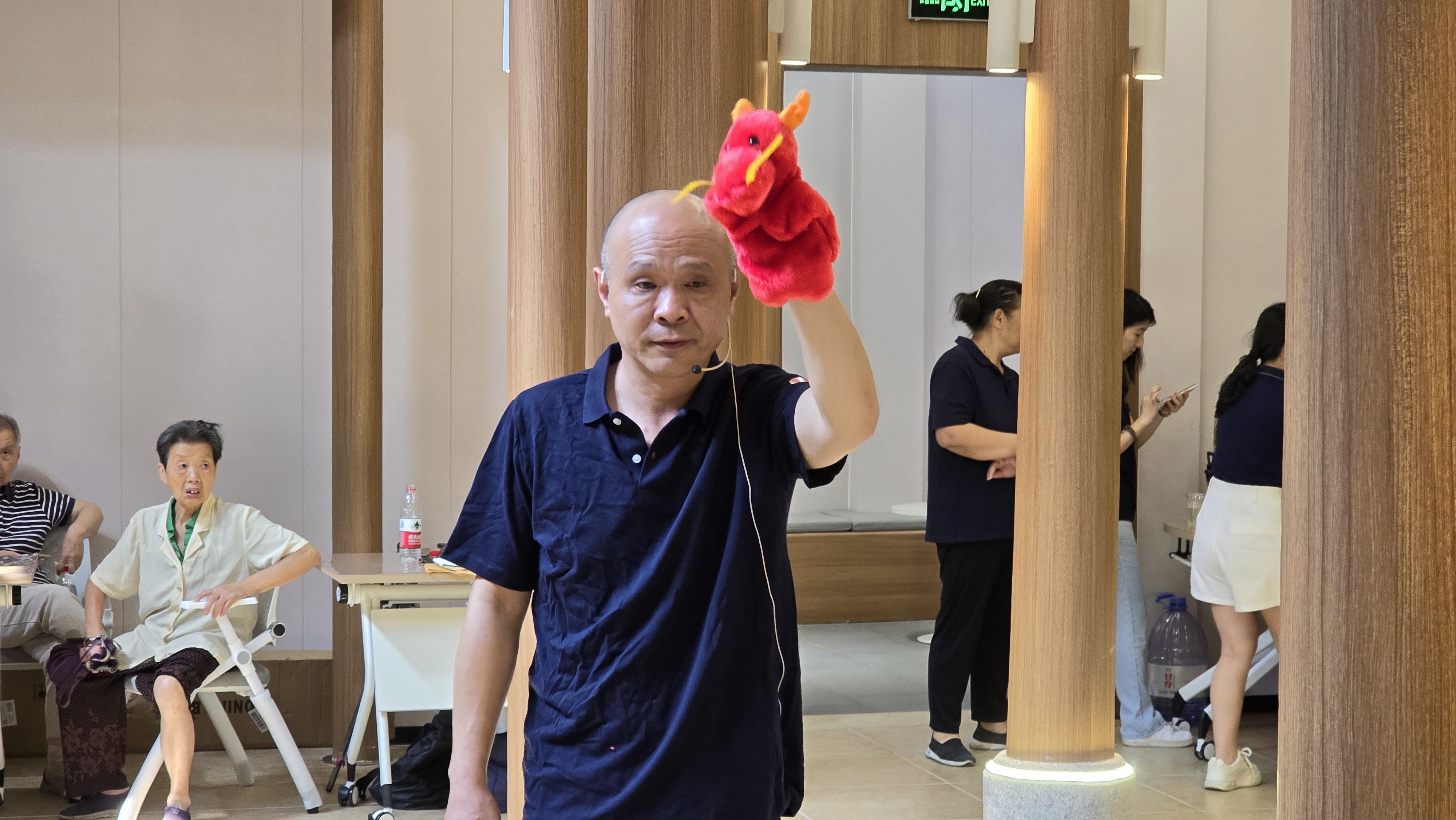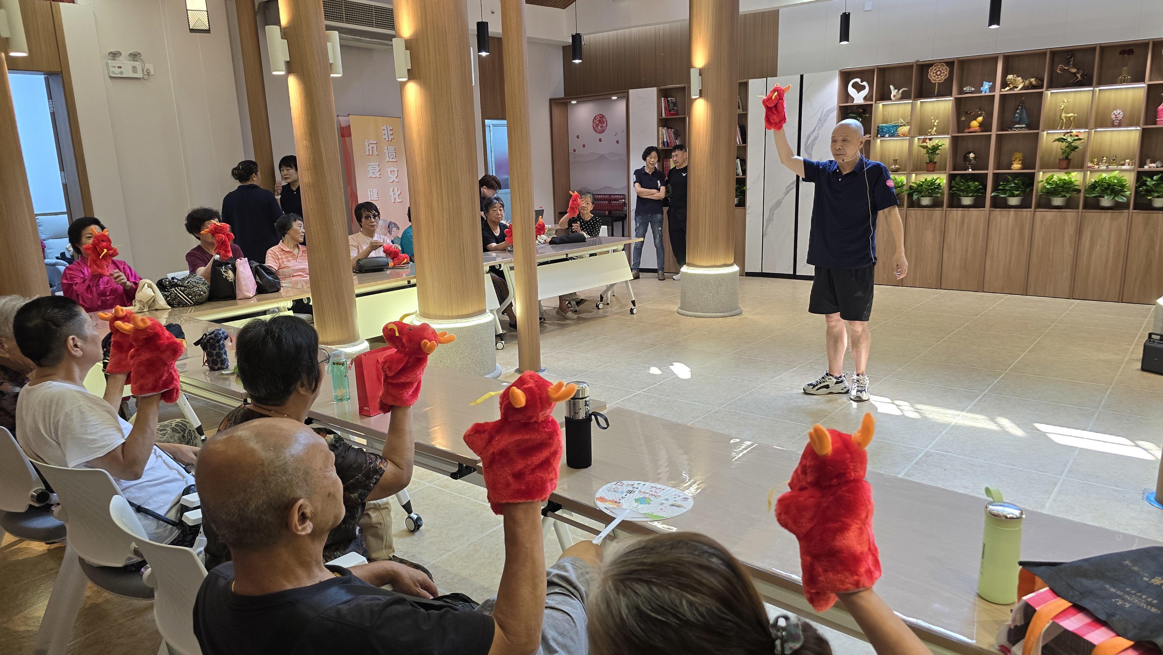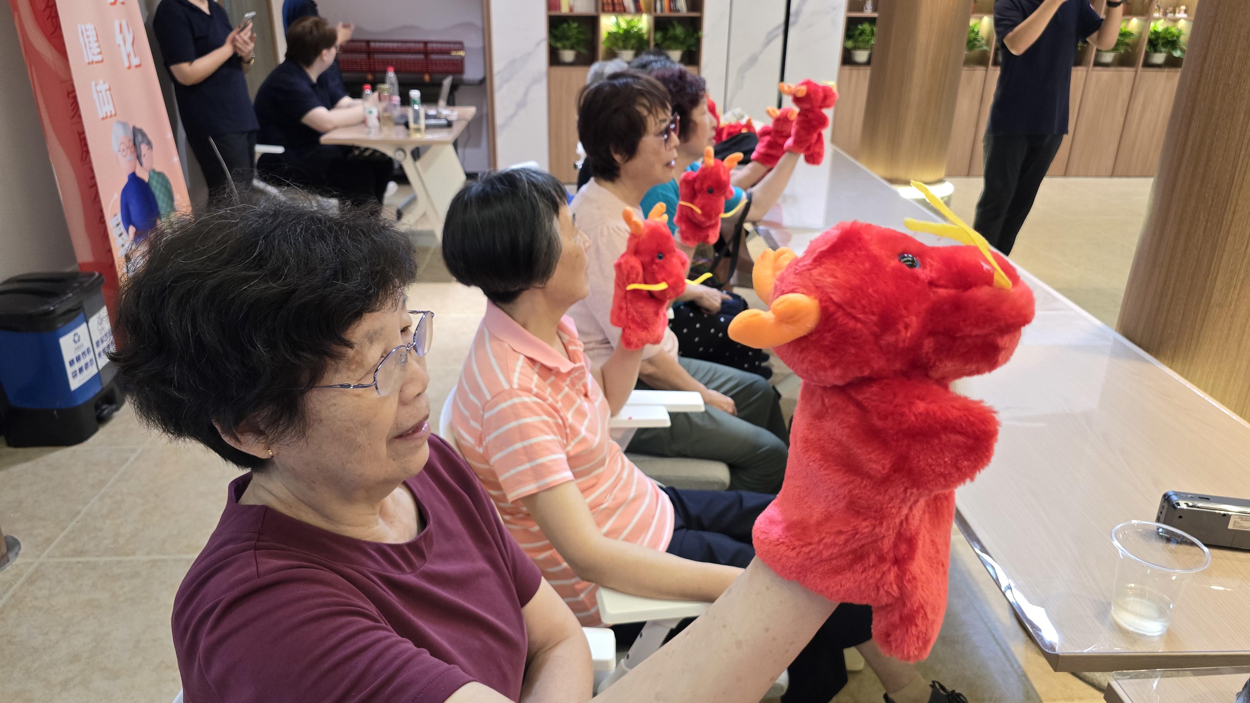 对南东的居民们来说,“掌上木偶”这项非遗技艺早已不再陌生,活动现场,指导老师给每位老人都发了一个手偶,随后带领着大家一起动起手指,有的动作看似简单,但实践起来并不容易,不过过程中带来的乐趣和对手脑的锻炼,让老人们受益匪浅,大家也都很喜欢这个活动,上手很快,乐趣无穷。指导老师陆玮东介绍,“掌上木偶”全靠五指来操纵,让老年人学习“简化”后的木偶操纵动作,可以帮助老人锻炼手部,让末梢神经活动起来,促进大脑运动和身心健康。