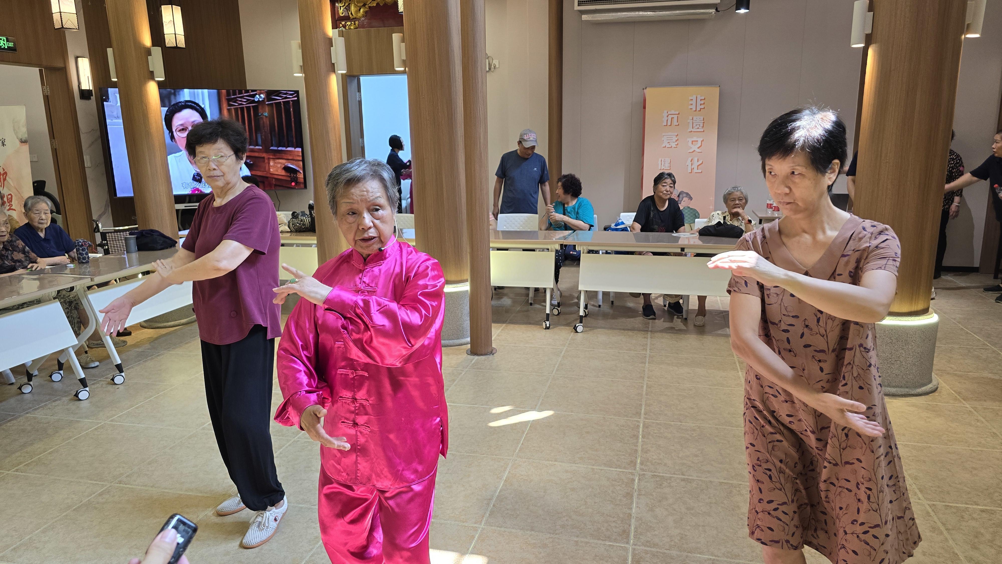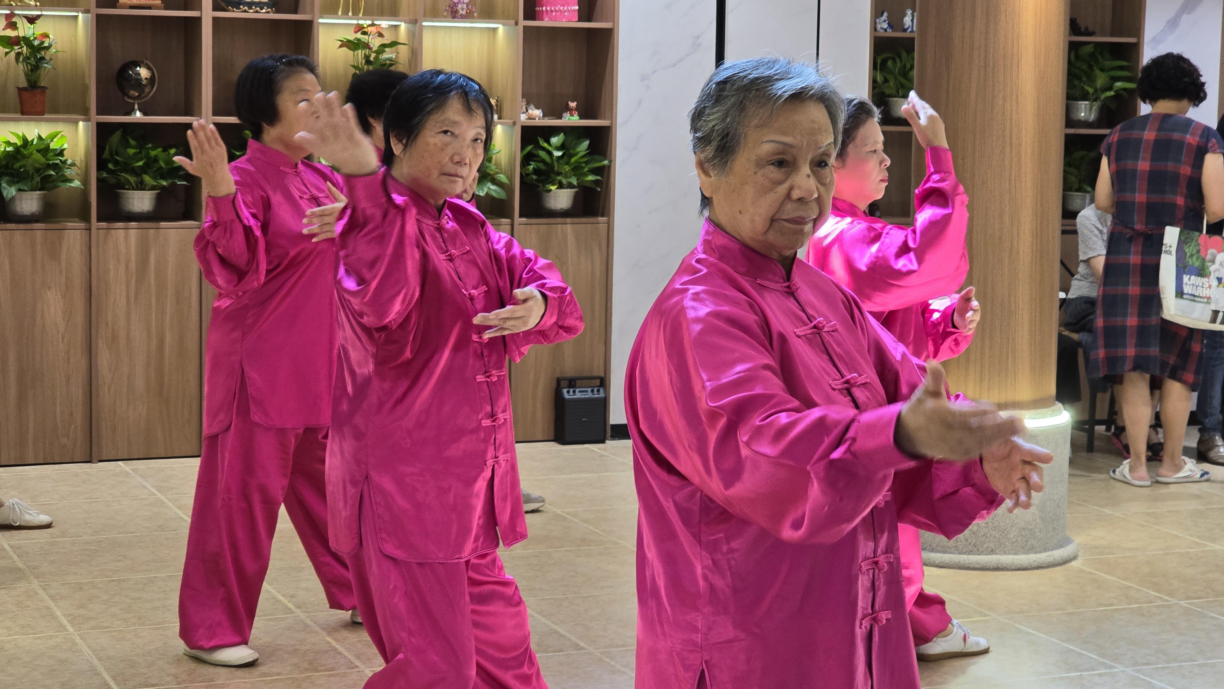 除了“掌上木偶”外,还有太极拳与经络锻炼操,帮助老人调节气血和疏通经络,增强体质,预防骨质疏松。