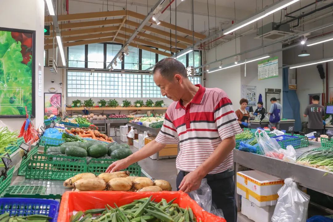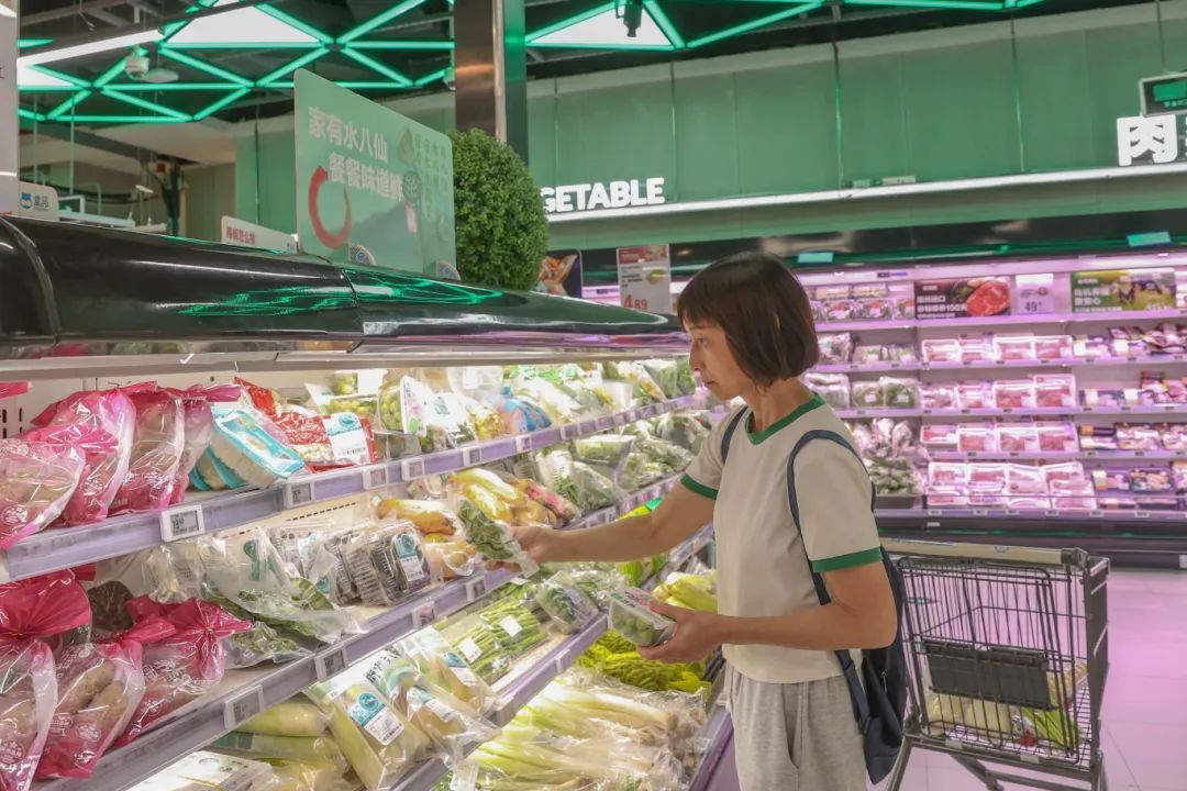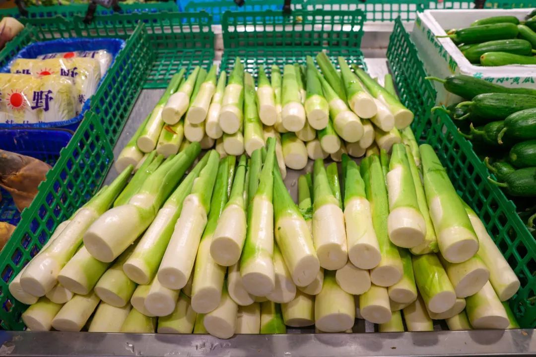 盒马鲜生松江平高店蔬果主管周俊明说:“‘水八仙’属于当季蔬菜,一经上市就成为热销产品,像茭白每天能卖50多份,在产品摆设方面,我们集中陈列,方便顾客挑选。”