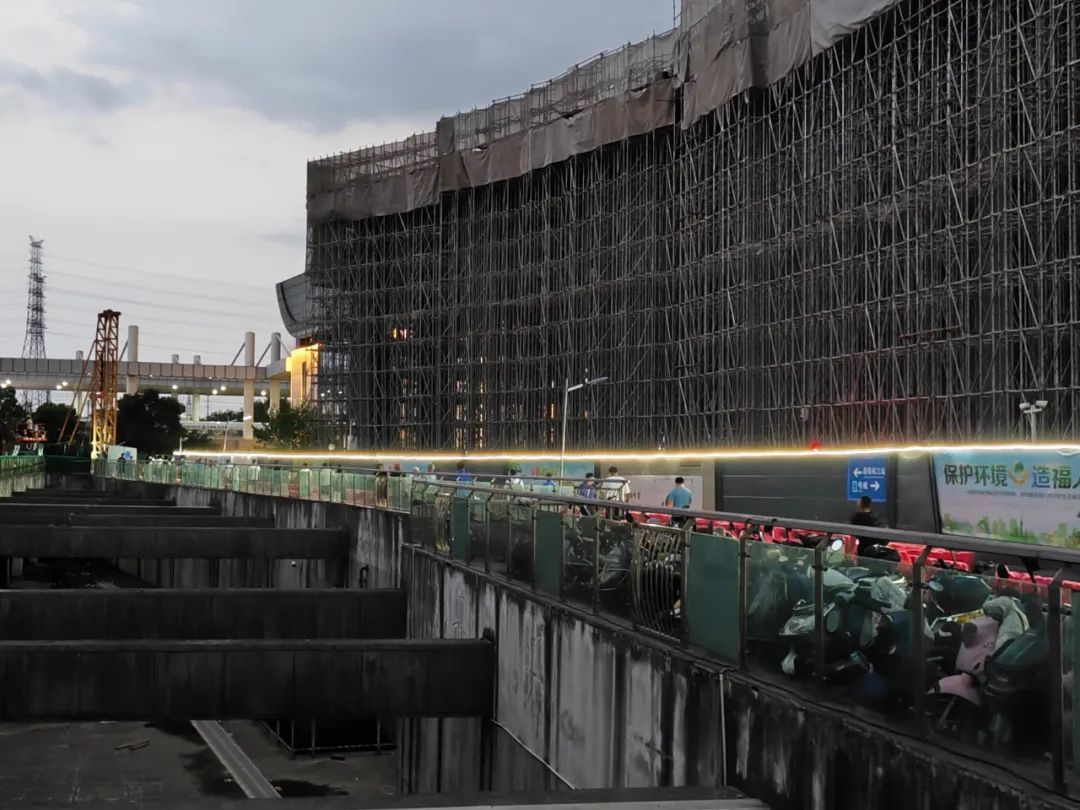 据了解,这里原来是站前广场,光源充足,松江枢纽开始施工后,为保障市民安全修建了一条临时通道,成为上海松江站换乘轨交9号线的必经之路。随着松江枢纽工程进度的推进,高大的建筑也渐渐遮挡住了原来的光线,给市民夜间出行带来不便。