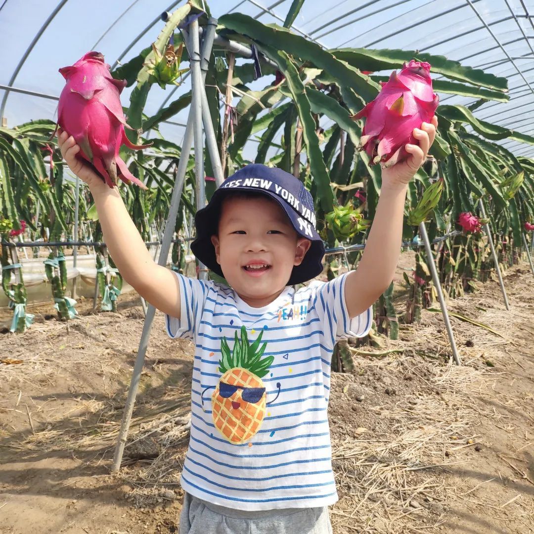 基地内的火龙果从七月份开始成熟,采摘期将持续至明年二月。基地种植的“台湾蜜红”火龙果均采用温室大棚技术,有效控制生长环境,确保火龙果在最佳状态下成熟,单果平均甜度在25度左右。此外,基地还可以认领火龙果树和游玩采摘哦。
