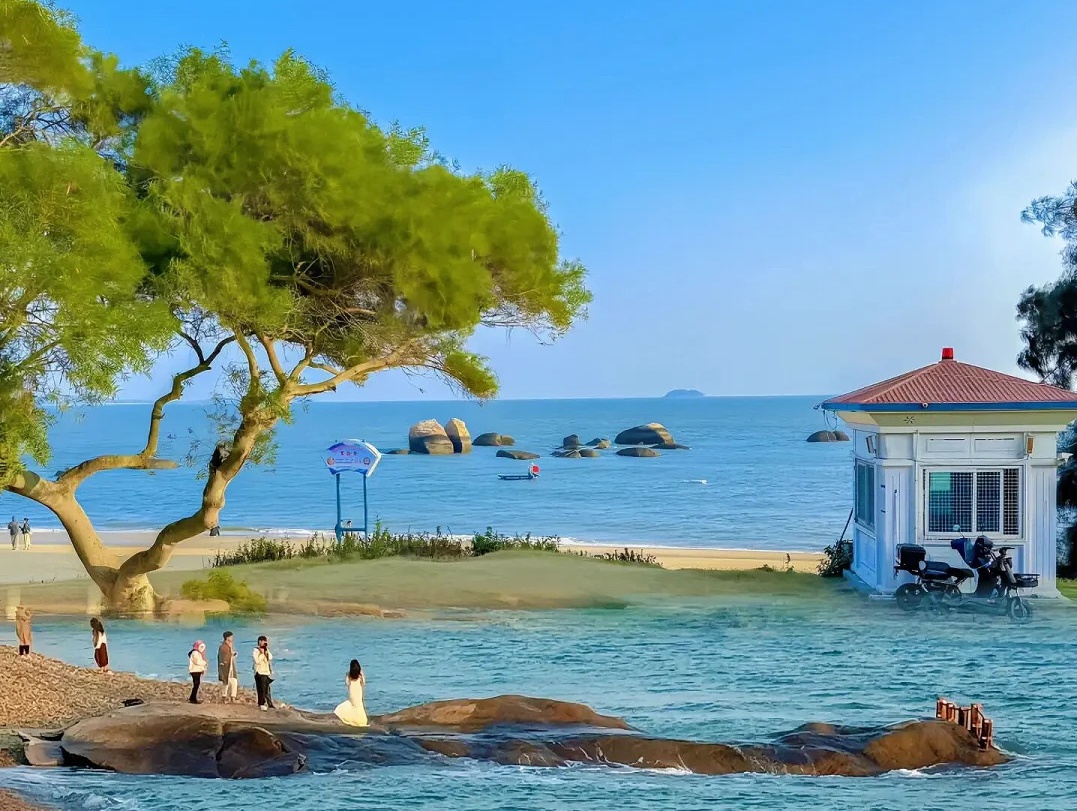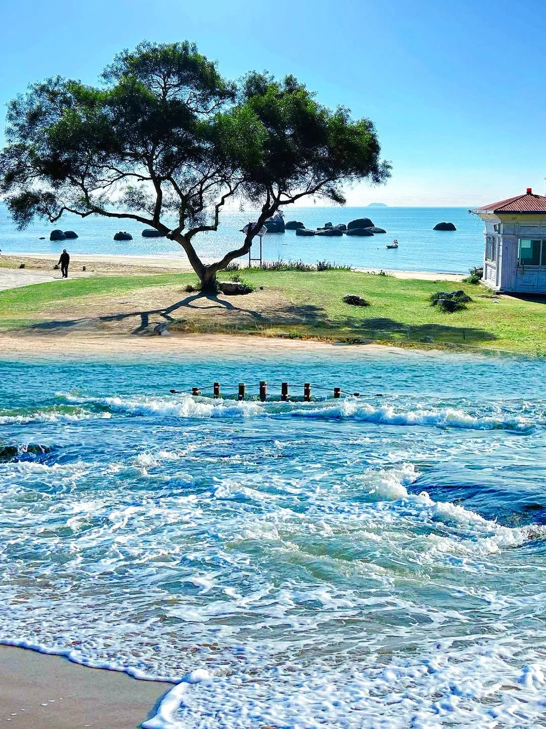 被誉为“万米金海滩”的金海滩海水浴场,水质优良,适合游泳和戏水。湛蓝的海水、细软的沙滩、和煦的阳光交织成一幅美妙的画卷,将大海的神秘与壮丽展现得淋漓尽致。
