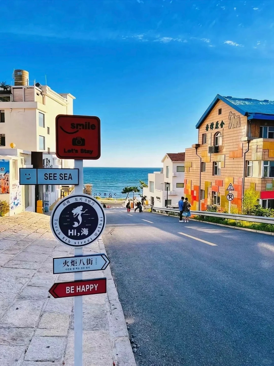 火炬八街,一条别具特色的文艺小街,与环海路组成的丁字路口,路尽头是大海由于坡路的位置正对大海,在这拍照不加任何滤镜都美到爆表!