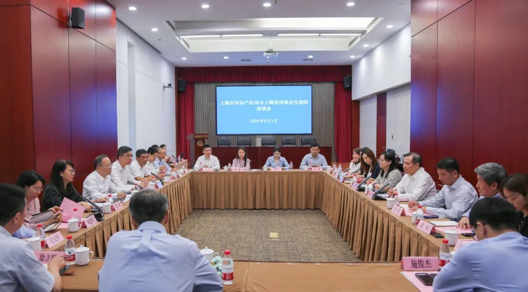 9月3日上午,上海美国商会会长郑艺率上海美资企业代表团访问上海市知识产权局,芮文彪局长接待了美方一行,双方举行工作交流座谈会。余晨副局长出席座谈会。