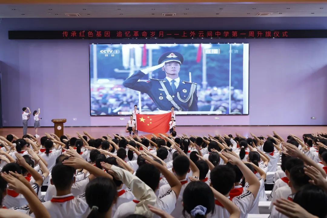 为缅怀革命先烈,铭记抗战历史,弘扬伟大抗战精神,激发学生爱国热情,上海外国语大学附属外国语学校松江云间中学举行了“传承红色基因 追忆革命岁月”主题升旗仪式暨综合素质拓展活动结营仪式。仪式上进行了“铭记历史,振奋精神向前行”主题国旗下讲话,提醒同学们要像军人一样用实际行动报效祖国,六年级的同学们通过一首朗诵《我想成为这样的人》向革命先烈致敬。