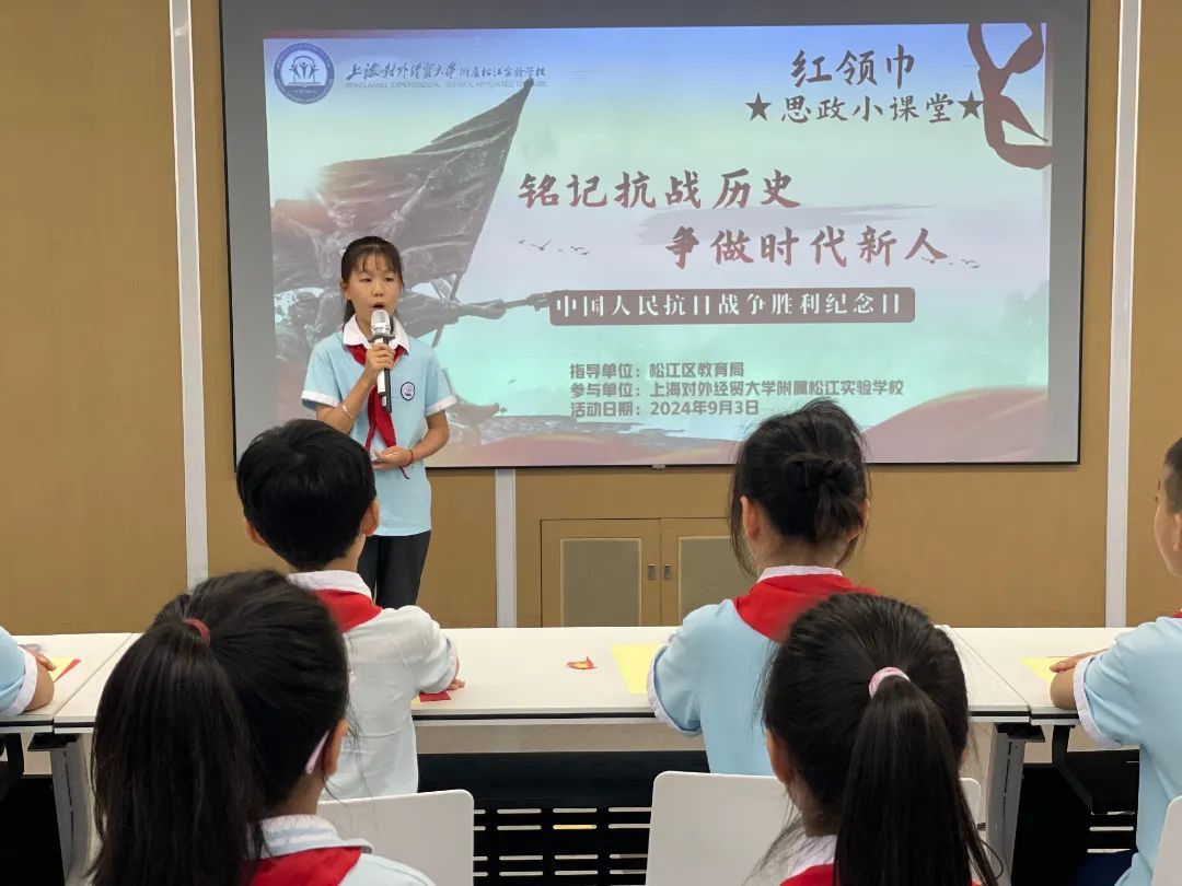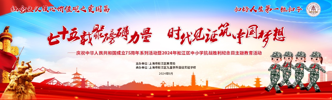 “七十五载聚磅礴力量 时代见证筑中国梦想”庆祝中华人民共和国成立75周年系列活动暨2024年松江区中小学校抗战胜利纪念日主题教育活动在上海市松江区九里亭外国语实验学校顺利开展。