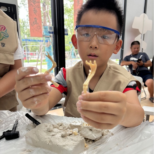 老师将带领孩子们一边聆听恐龙故事,一边感受历史的沉淀,亲自动手考古探究,挖掘神秘宝藏。
