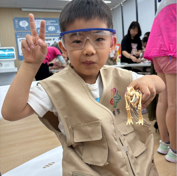 随着挖掘工具的轻轻落下,尘土飞扬间,历史的碎片逐渐显现。孩子们手持放大镜,小心翼翼地观察着每一块“化石”,用小锤子和小刷子轻轻敲打、清理,仿佛在进行一场神圣的仪式。当霸王龙的尾巴终于露出真容,孩子们的欢呼声此起彼伏,那一刻,他们不仅发现了恐龙的秘密,更在心中种下了探索未知、追求真理的种子。