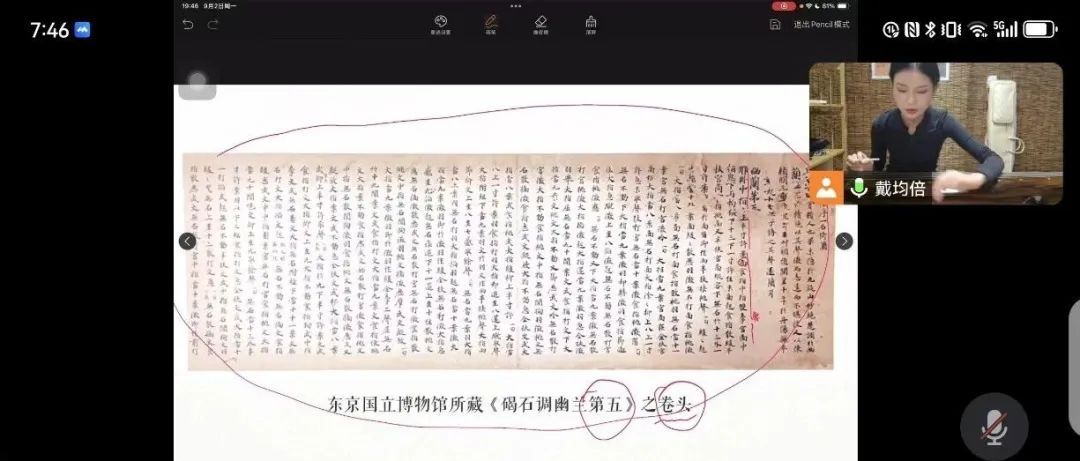 晚上7时,依托线上平台,三门课程在不同的“教室”开课。带课老师全程打开视频,借助PPT进行教学。古琴老师戴均倍先从古琴的材质、结构、款式、指法等基础知识进行普及,并为大家现场弹奏了经典曲目。工笔画老师王海霞从选纸笔讲到笔法、用色,一边示范一边讲解,视频另一端的学员们也在老师的引导下勾勒出了一幅幅精美的画稿。陶笛老师刘磊鑫首节课同样以分享基础知识为主,学员们在后台互动积极,还纷纷发出自己的陶笛图片与大家品赏。