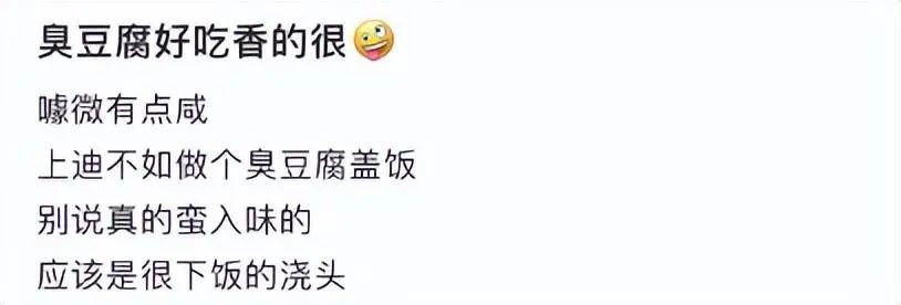已经品尝过的网友表示:“豆腐只有一点点臭,其实是黑豆腐,还挺好吃的。”也有网友调侃:“臭豆腐和榴莲冰激凌都有了,要不再来个螺蛳粉?”