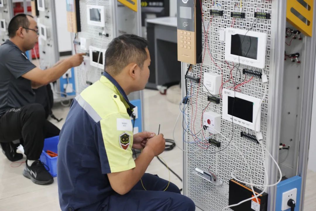 实操则对选手综合能力提出了极高要求,包括查找故障、安装、接线门禁对讲、门磁,烟杆探测器报警器,磁力锁的接线及设置,题目紧密结合实际工作场景。