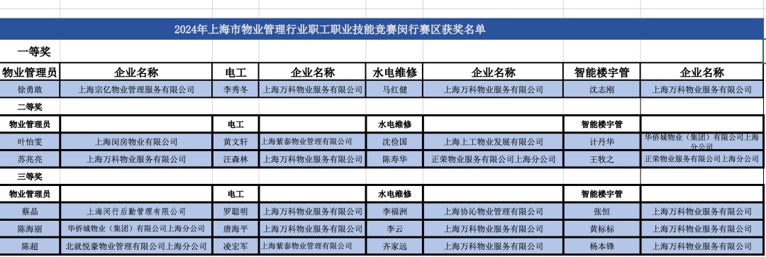 8月28日,来自闵行的128名物业从业人员齐聚一堂,进行大比拼——“弘扬工匠精神·促进行业发展”——2024年物业管理行业职业技能竞赛举行。活动分别评选出“物业管理员、电工、水电维修,智能楼宇管理员”四个项目一等奖1名、二等奖2名、三等奖3名,评选出22家优秀组织奖。通过这次闵行竞赛初赛,推选4个项目中排列前3名的选手参加市物业管理行业职业技能决赛。活动由闵行区总工会、闵行区住房保障和房屋管理局主办,市物协闵行代表处承办。