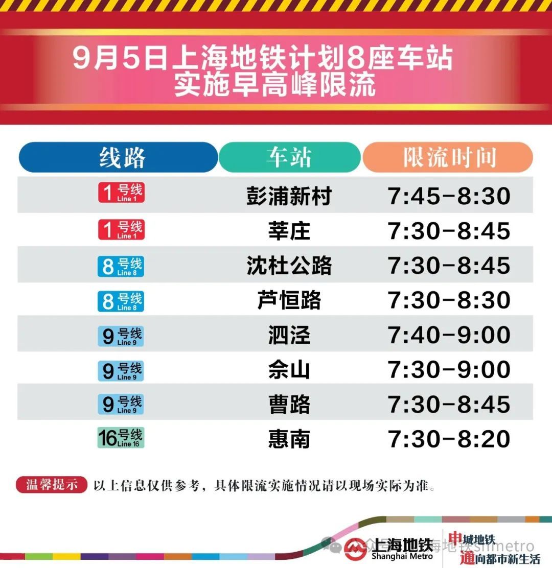9月5日早高峰泗泾、曹路等8座地铁站计划限流