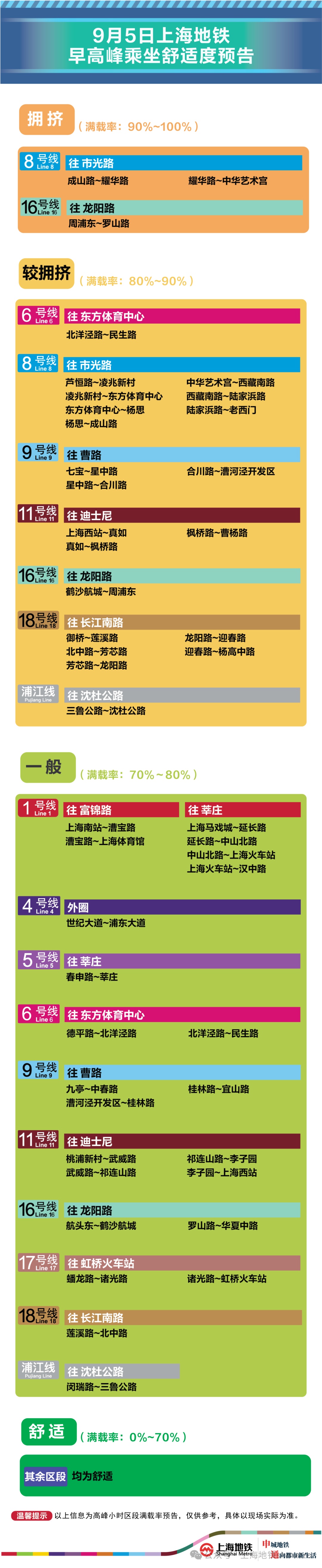 为提升上海地铁早高峰期间出行服务水平,提升乘客乘坐体验,上海地铁向乘客提供乘坐舒适度预告,方便乘客提