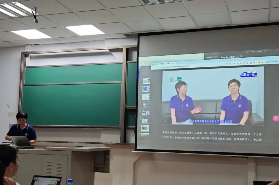 视频中的“黄萱菁”是通过声音采集、人脸建模等生成的数字分身。黄萱菁用这种形式让同学们直观感知AI力量。