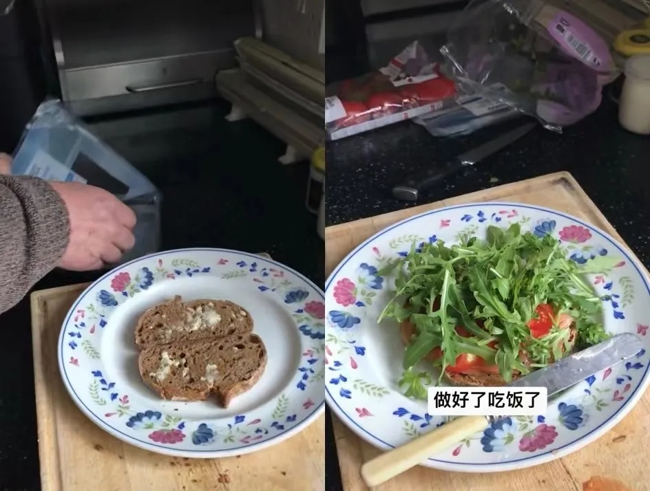 基思大叔的走红源于一次他做午饭的视频:视频中基思大叔用餐刀咔呲咔呲“锯”下两片硬邦邦的面包片,然后用餐刀颤巍巍刮出黄油,努力均匀地抹在面包上,盖上牛油果、培根、几根菜叶……