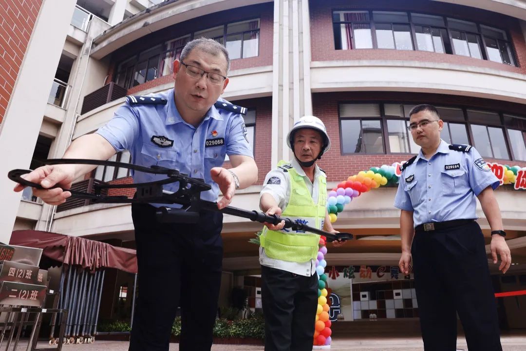 同时,为有效推动公安机关“高峰勤务”与校方安防力量的融合联动,全面提升学校突发事件应急处置能力,民警在现场指导校方组建了以保安员和青年男性教师为主体的最小作战单元,开展“二对一”“三对一”等技战术技能培训。