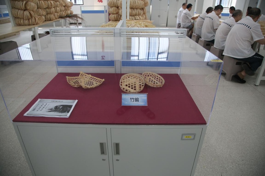 新岸舞台的斜对面,是非遗竹编的习艺区。服刑罪犯正在按照“左上右下”方式排列竹篾;竹篾排列完成后,再按照“右一根、左一根”的顺序逐步加插、交叉,加插到七根之后,再穿插以各种技法,如:疏编、插、穿、削、锁、钉、扎、套等,使编出的图案花色变化多样。正如引进该项目时的初衷:竹编的基础是‘做底’,底要做的方方正正,才能做出完美的竹编作品——做事同做人的道理一样,做人也要堂堂正正。