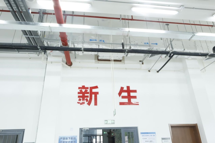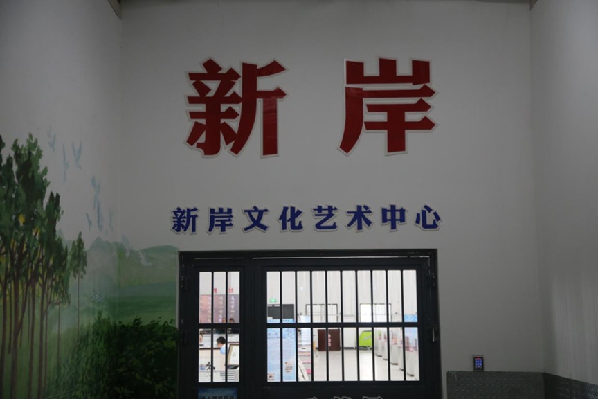 “新岸”,寓“全新的人生彼岸”之意,既是一个“改造旧我”的平台,也是一个“走向新生”的起点——正如文化艺术中心大门上巨大红底描白艺术字所昭示的内容,“入门是新岸,出门即新生”,中心的成立也进一步擦亮改造品牌、拓宽改造路径、紧跟改造形势、塑造改造格局。