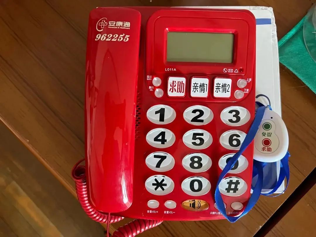 “求助”按键直接连通“一键通”服务平台,一旦老人在家突发意外需要帮助,拿起听筒、按下按键、提出诉求,呼叫中心工作人员会即刻根据老人来电内容、状态、表达能力,判断出老人所处情况,并帮助提供报警、信息咨询等24小时应急服务。座机还有一个配套遥控器,供老人随身佩戴,方便随时求助。