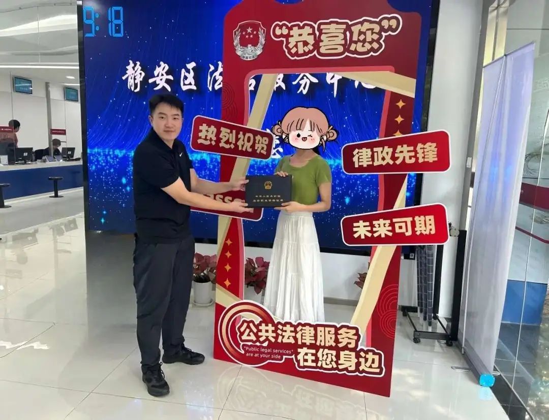 考虑到应届生已经投入到工作中,时间有所不便,静安区公共法律服务中心安排专人中午值班,确保领证窗口不间断,为其提供便利。