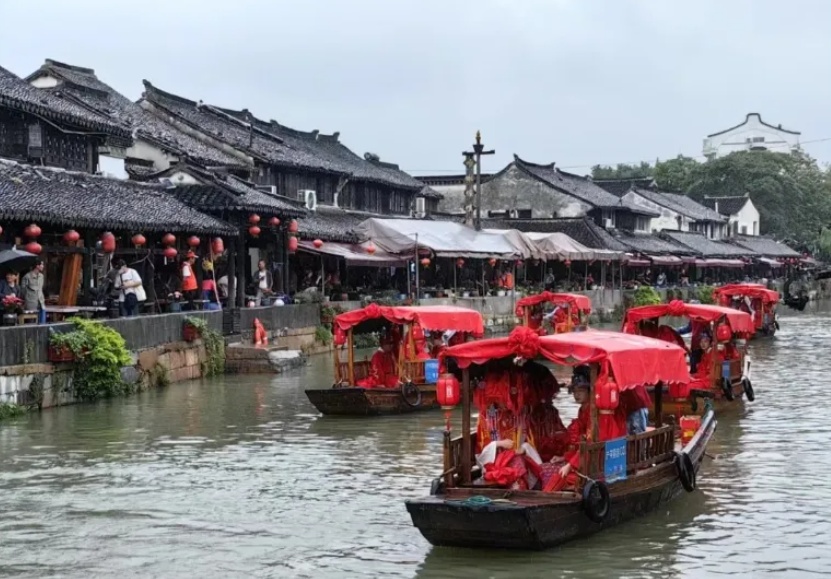 ◉ 乘坐传统摇橹船,穿梭于古镇水巷,感受江南水乡的韵味。