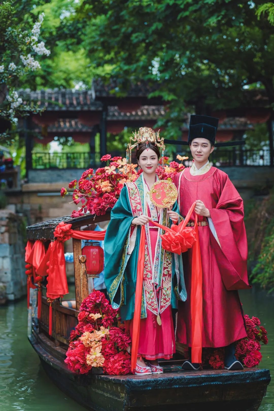 『梦想中的婚典 枫泾为你呈现』 你是否幻想过一场与众不同的婚礼? 在江南水乡的柔情中 与挚爱携手 步入婚姻的殿堂 枫泾水乡婚典 一个融合传统与现代 古典与浪漫的结婚盛典 正等待着你! 往届活动照片 ▽▽▽ 第十八届“吴跟越角”枫泾水乡婚典 即将启幕 本届水乡婚典采用宋制婚礼仪式 20对新人身着宋制婚服 行沃盥礼、同牢礼、合卺礼、解缨等传统婚俗