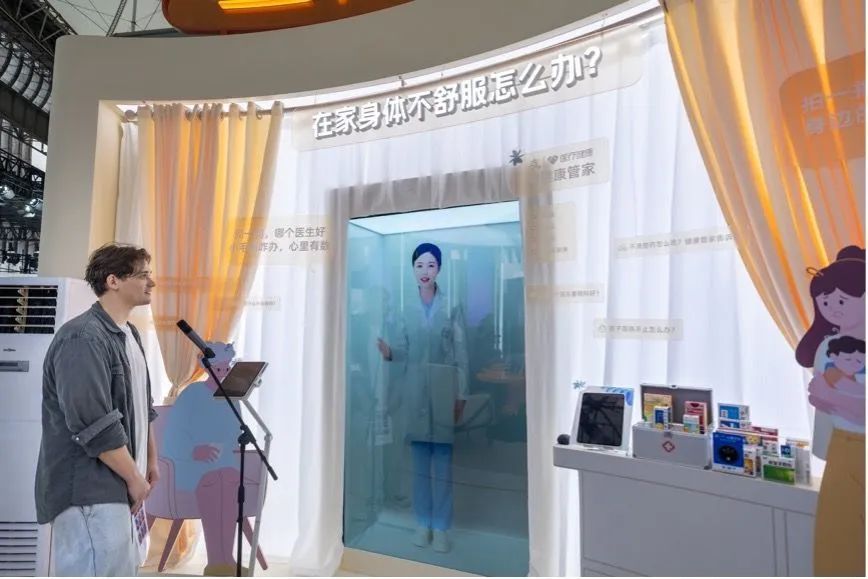 在“未来健康”展区,观众可以体验支付宝AI健康管家提供的AI识药盒、读检查报告等系列家庭健康服务。支付宝医疗健康业务负责人刘婷婷表示,支付宝目前已经推出了医疗大模型,居民可以通过支付宝的入口,向大模型问病问症状、问药问医保。在模拟的医院环境中,还可以看到数字健康人“安诊儿”,“安诊儿”由浙江卫健委与支付宝联合推出,帮助医疗机构为患者提供覆盖就医前、中、后的“AI陪伴就诊”服务。
