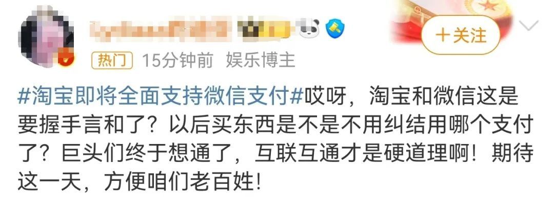 阿里腾讯两大巨头间的支付互联互通,再迎重磅进展。“淘宝即将全面支持微信支付”的话题登上微博热搜榜第一。