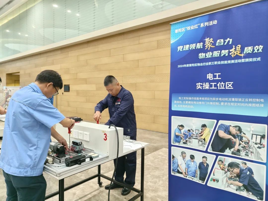 据了解,本次技能竞赛于8月初启动,共吸引到了全区约200名物业从业人员参与。竞赛涵盖电工、水电维修工、智能楼宇管理员、物业管理员和项目经理等5个工种,体现了物业行业全方位、多层次的技能要求。通过培训、考核和竞赛等环节,全面检验参赛选手的专业技能和综合素质。“普陀区是一个典型的人口导入区,现拥有678个居住小区,住宅面积4011万平方米,辖区内在管物业企业163家,从业人员1万余名。”普陀区住房保障和房屋管理局副局长郑荣全介绍道,“提升物业服务水平不仅是满足居民美好生活需求的关键,更是我们推进‘双业红’工作的重要内容。通过举办这样的技能竞赛,希望能挖掘和培养出更多的劳模和工匠,从而推动整个行业的技能水平和服务质量不断提升。”