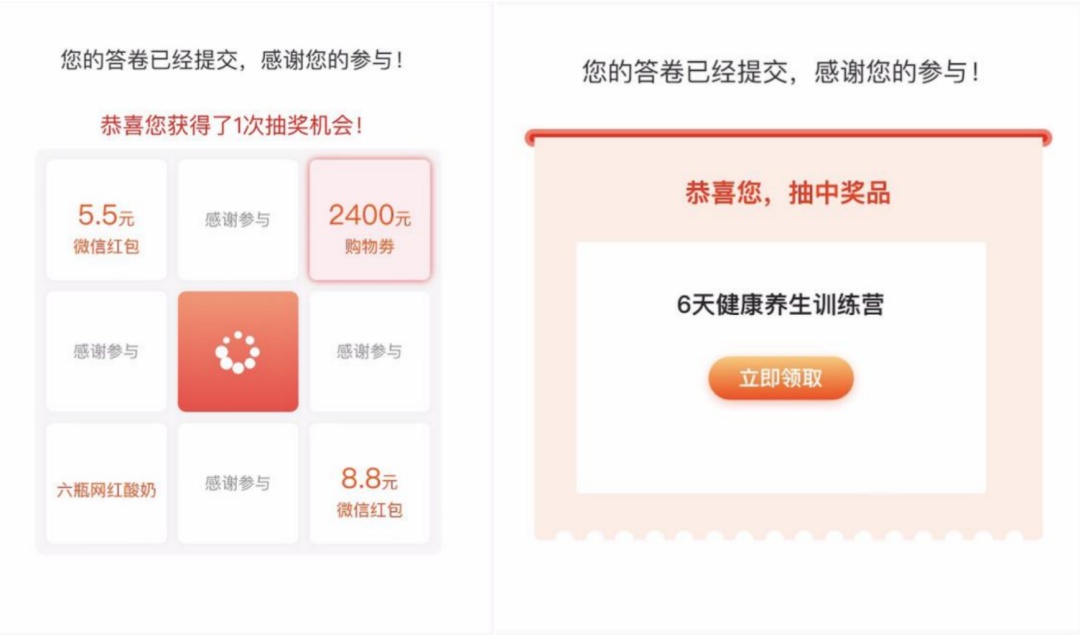 ▲记者实测两份问卷,发现不同的问卷“奖品”会有所不同