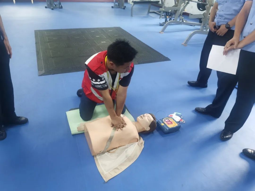 应急救护技能实务培训,教导民警如何正确进行心肺复苏抢救和AED使用,提升民警在突发情况下的应急救护能力。