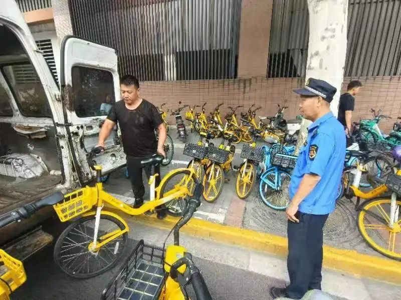 线下巡查,街道管理办联合综合行政执法队、交警等多部门联动,组织人员采取定岗值守、错时执勤、流动巡查等方式,对无序停放的共享单车及时清理。