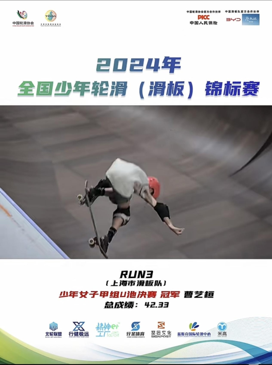 2024年8月24日至25日,由中国轮滑协会主办的2024年全国少年轮滑(滑板)锦标赛,在天津北辰区米高北方轮滑(滑板)训练基地举行。
