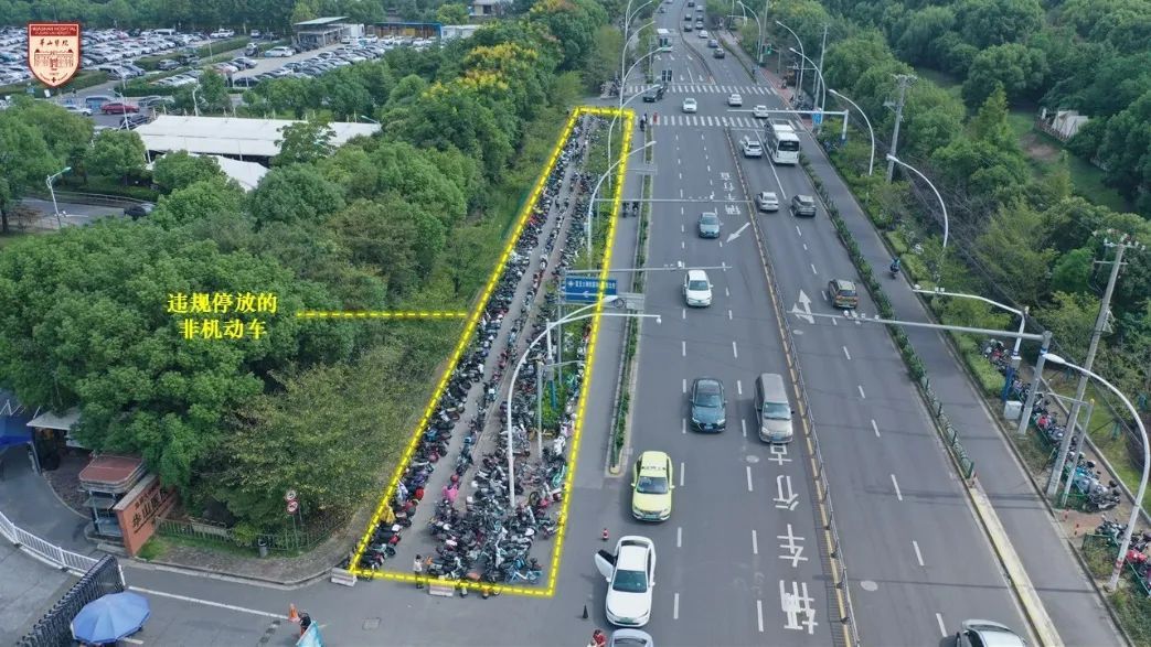 近年来,华山医院宝山院区周边人口逐年增多,50多个小区已陆续入住100多万居民,医院年门急诊量也已从建院之初的33万涨到现在的125万,翻了4倍。院区周边停放非机动车中,属于患者的极少,大多是乘坐轨交的居民、商圈商户、顾客或是公园游客,而且一停就是半天甚至一天。