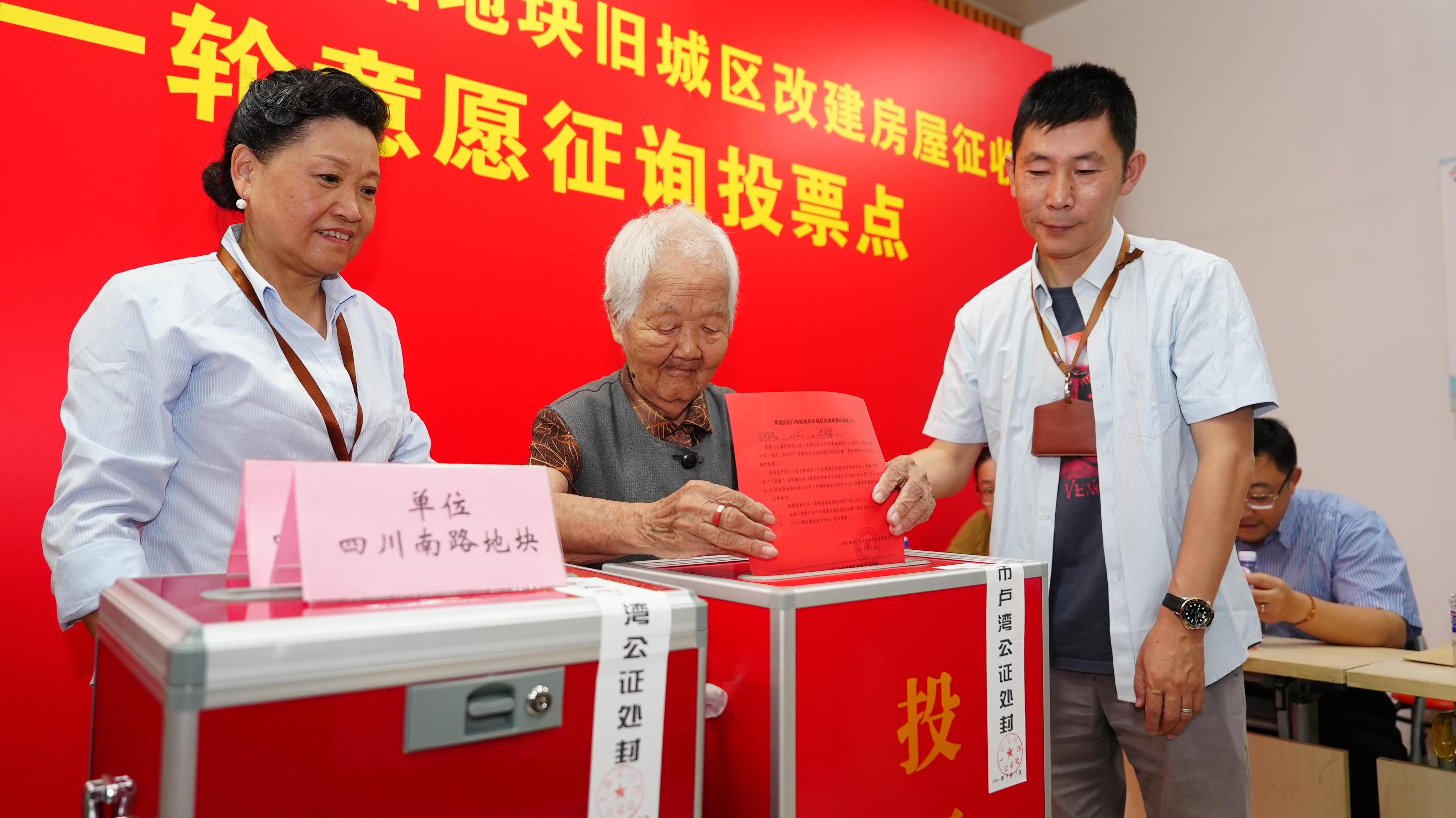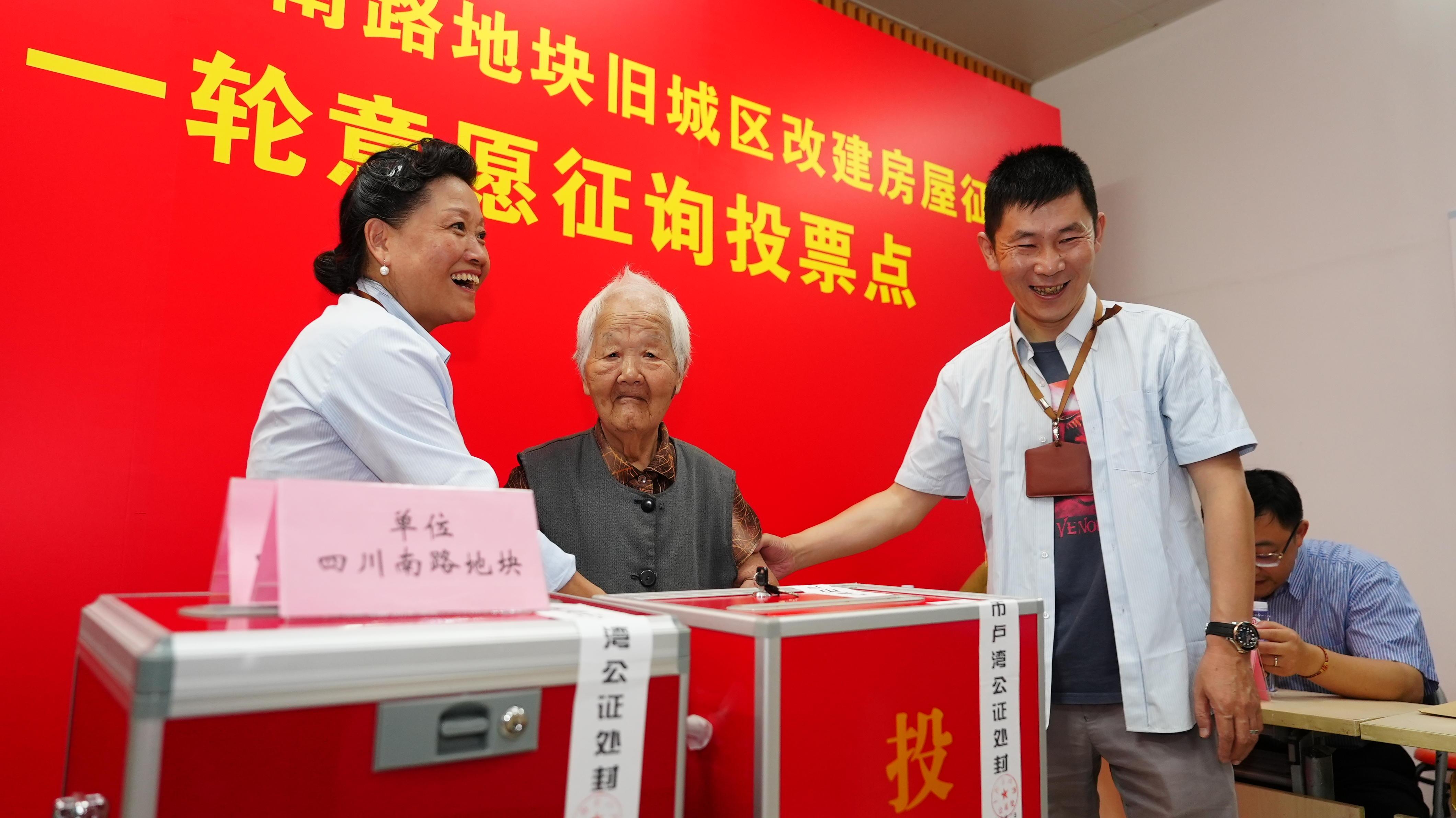 “终于盼到了!”投票现场,今年已经99岁高龄的沈金翠阿婆,坚持要亲自来投票。“没想到,到这个年纪了,还能盼到新房子。”沈阿婆虽然年近百岁,但身体依旧硬朗,精神矍铄,说起话来也底气十足。虽然话里话外对这片故土有万般不舍,但为了能让这片故土重获新生,她说要和邻居们一起坚定地投下旧城区改建意愿的同意票,一起奔向更美好的新生活。