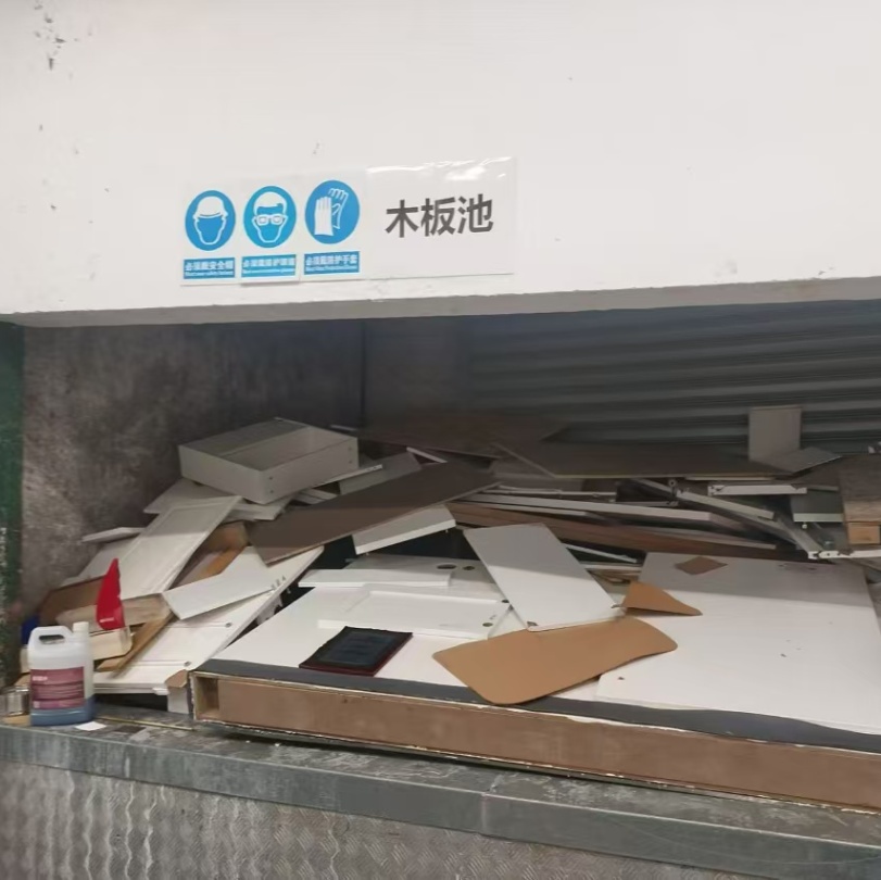 可回收物精细化分类:宜家每月产生可回收物高达30000公斤,为了更好地将废品资源化利用,宜家对可回收物进行了细分类,从大型家具到小型抱枕,根据商品的材质以及大小设定了不同种类的精细化分类投口,包括纸板、木材、金属、缠绕膜、塑料瓶、混合塑料、塑料捆扎带、易拉罐、玻璃、纺织品、沙发、床垫等十余种回收投口,存放于垃圾房。垃圾产生后,管理人员进行拆解并投入适配的投口进行存放,定期由可回收物企业进行统一回收,通过精细化回收利用的手段促进垃圾分类减量以及资源化利用。