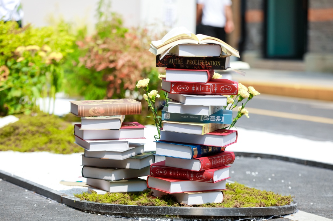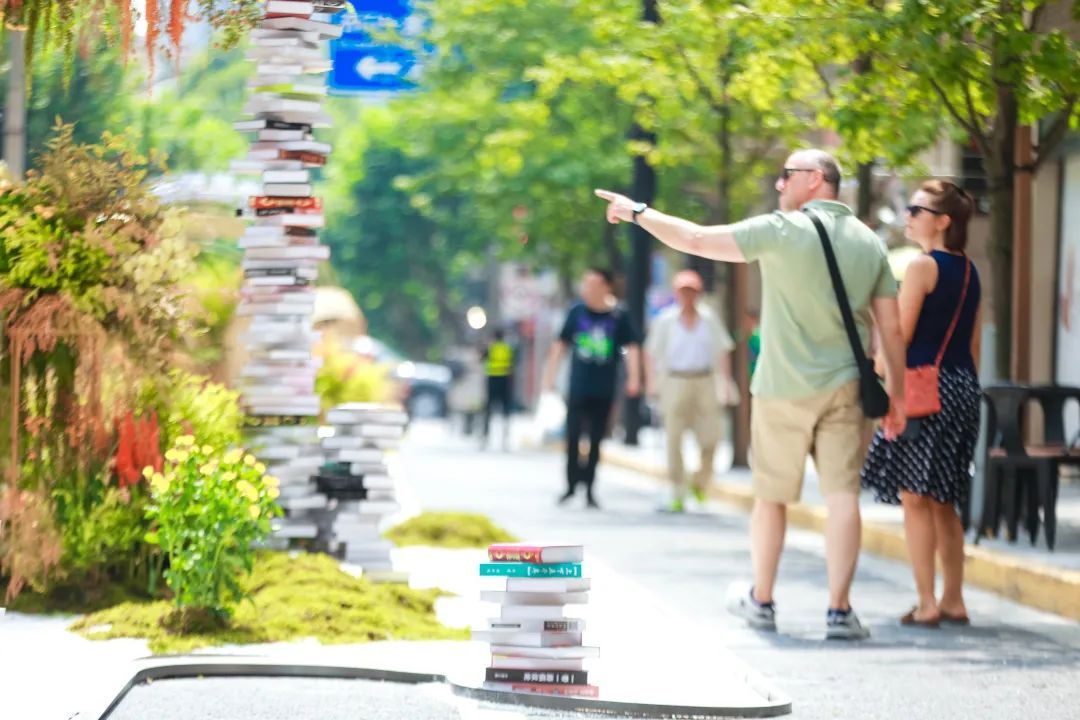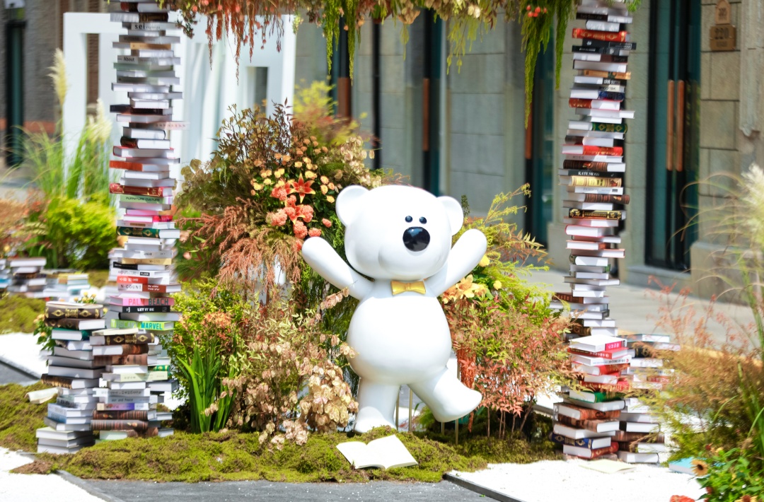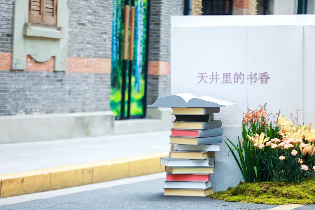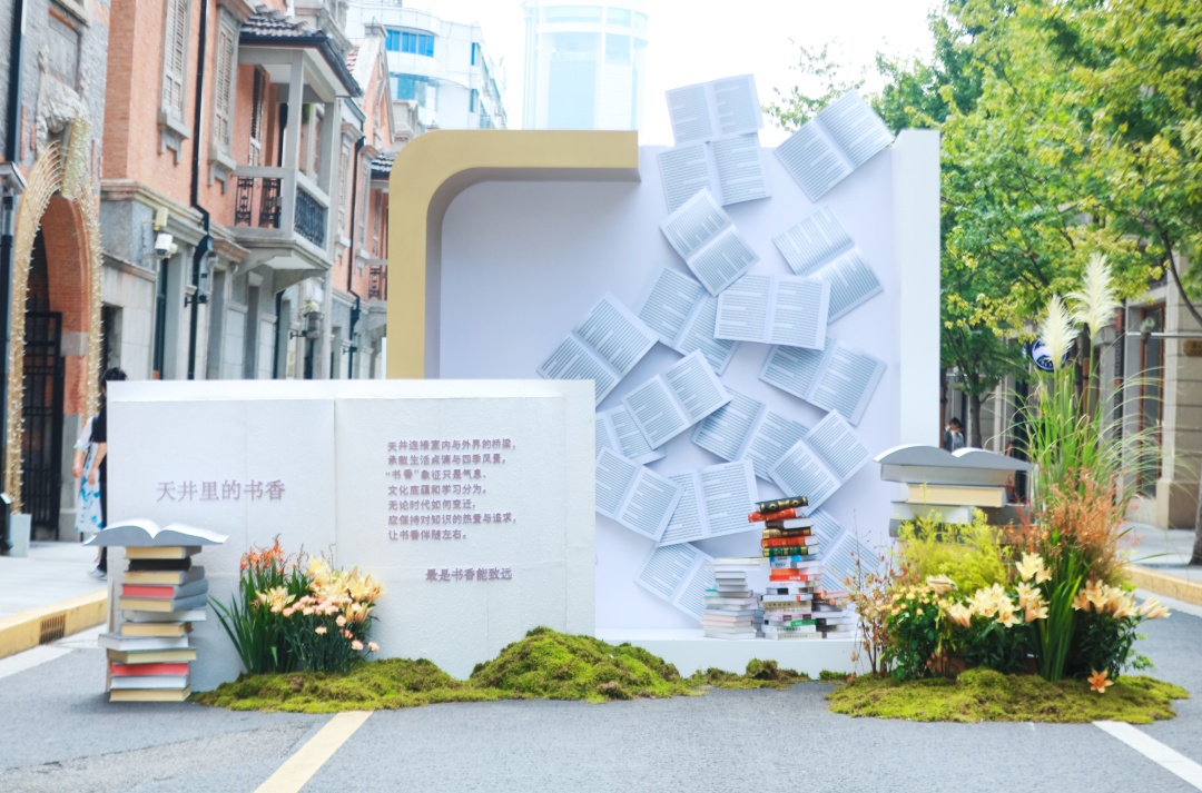 多样的书籍形象成为主视觉元素,再结合文人墨客曾在张园留下的诗作、海派建筑元素和艺术插画等丰富的文化素材以及点缀其间的绿色植物,让“最是书香能致远”的独特文化氛围变得可知可感,且触手可及。
